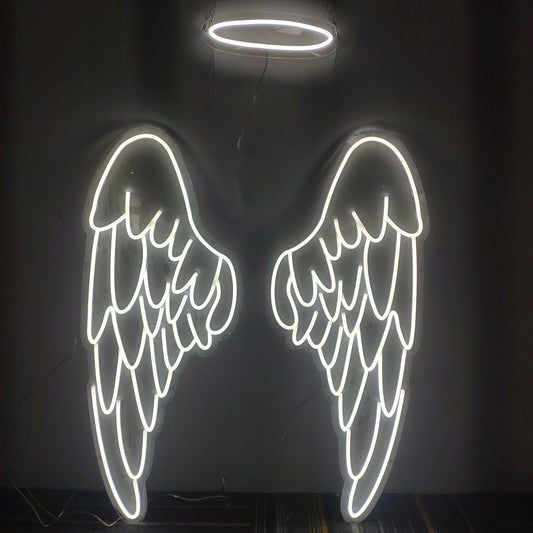 Аngel Wings & Halo Neon Sign Custom Neon Light Sign Event Party Birthday Wedding Decor Angel LED Neon Light Photo Zone Decor